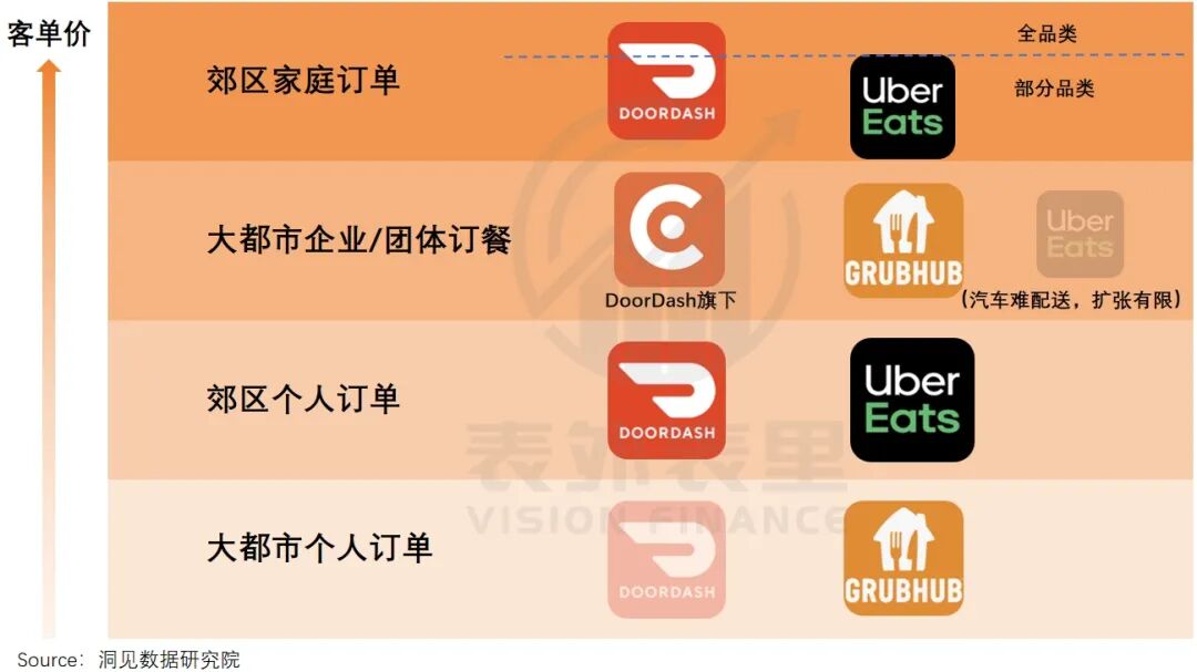 而这一幕,正是美国外卖平台错位竞争的缩影—— 玩家们基于自身特性,选择各自擅长的跑道,“ 占山为王”。