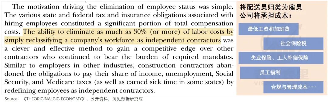 上文提到,郊区中产更看重“ 送得到、送得好” 而非“ 送得快”,美国 60% 连锁餐饮化率让餐品易于配送…… 这些得天独厚的条件,让 DoorDash 天然匹配“ 灵活用工”。