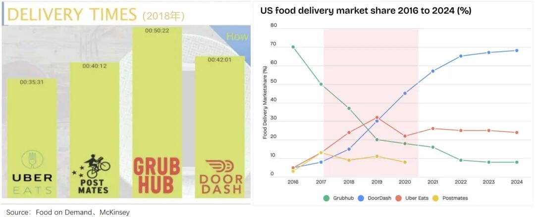 但“ 磨蹭” 并不妨碍 DoorDash 订单接到手软,它甚至成为了餐饮配送市场增速最迅猛的新星。