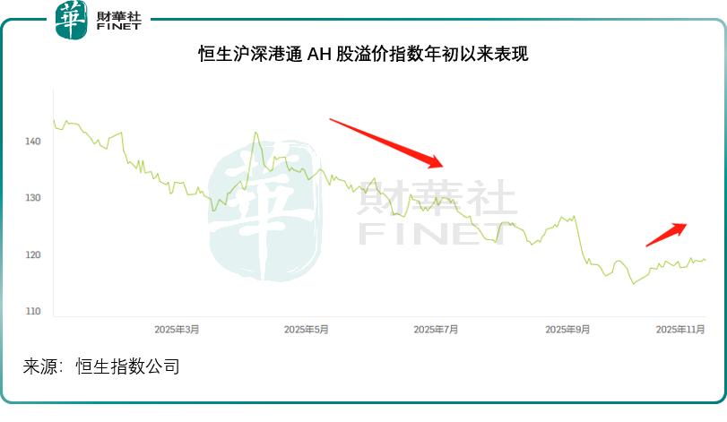 A 股在科技板块引领下反弹,而港股则受美股虹吸效应等因素影响震荡走弱,这一“ 一强一弱” 的格局被动拉大了估值差,但踏入 11 月,两市的波动仍在持续,短期波动仍在推动 AH 溢价的起伏。