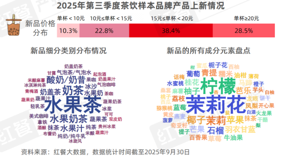3. 茶饮:奶茶类产品上新数量较多,应季水果、花卉成为创新源泉