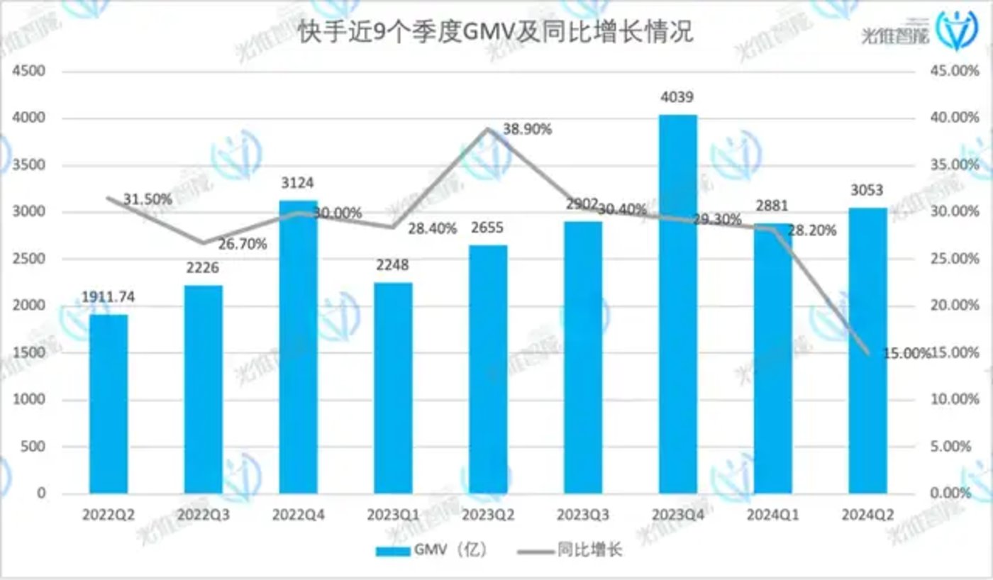 其中,最受关注的快手电商 GMV 达 3053 亿元,同比增长 15%,虽然涨势良好但不及预期。