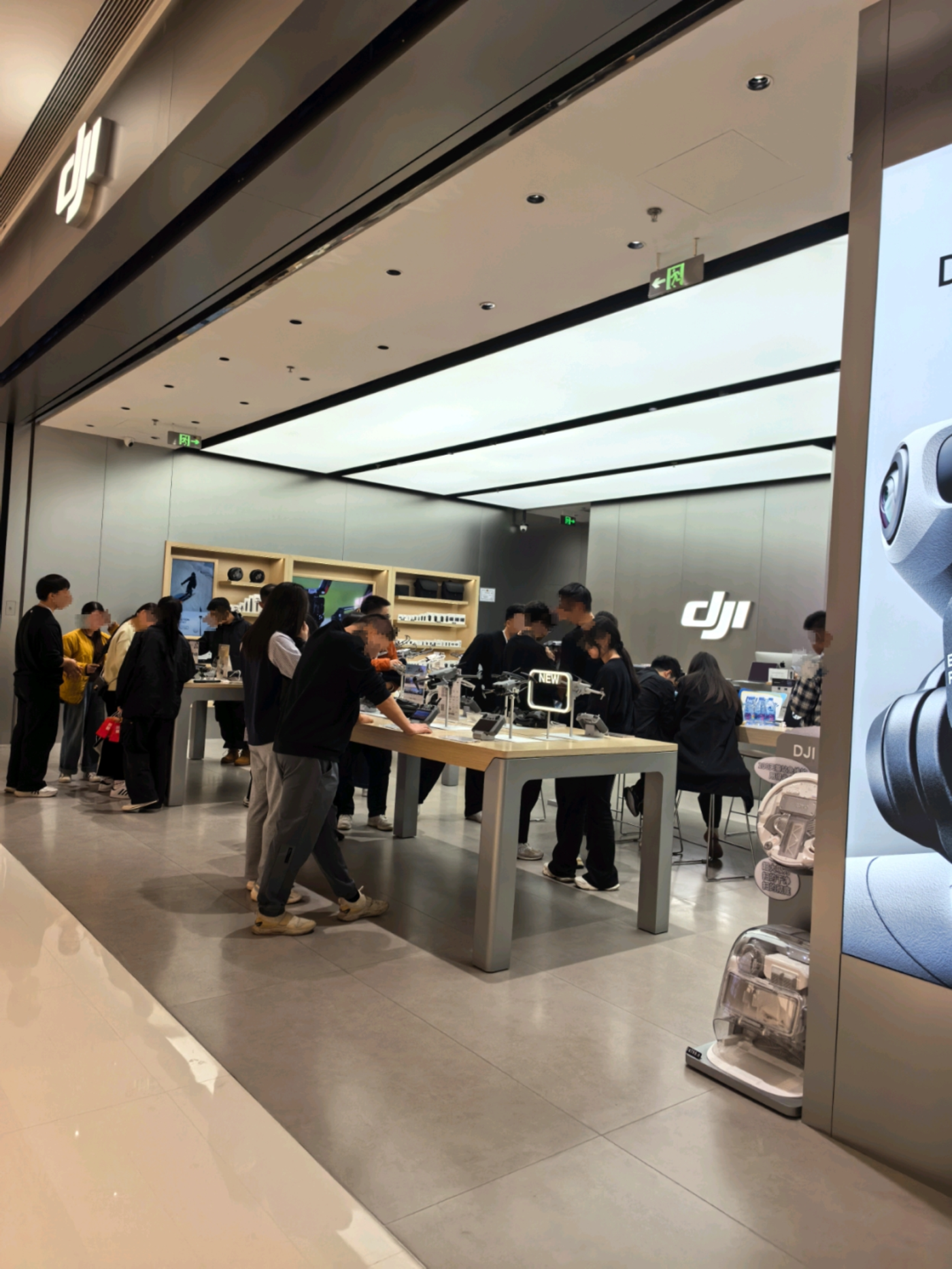 大疆店内,顾客正在体验产品,作者拍摄