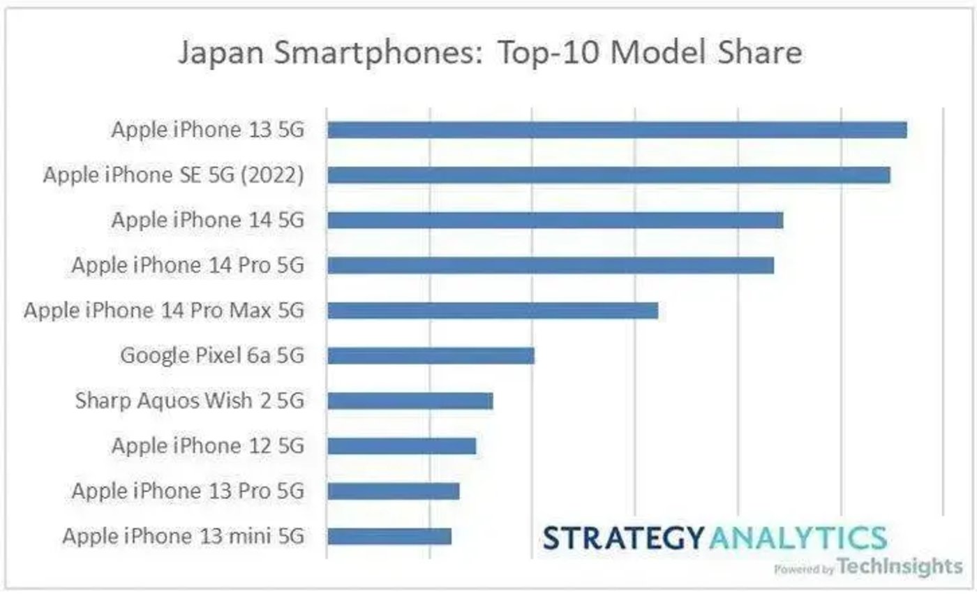到 2018 年,苹果首次在日本取得 50% 以上份额。自此以后,苹果常年独霸日本手机市场的半壁江山。