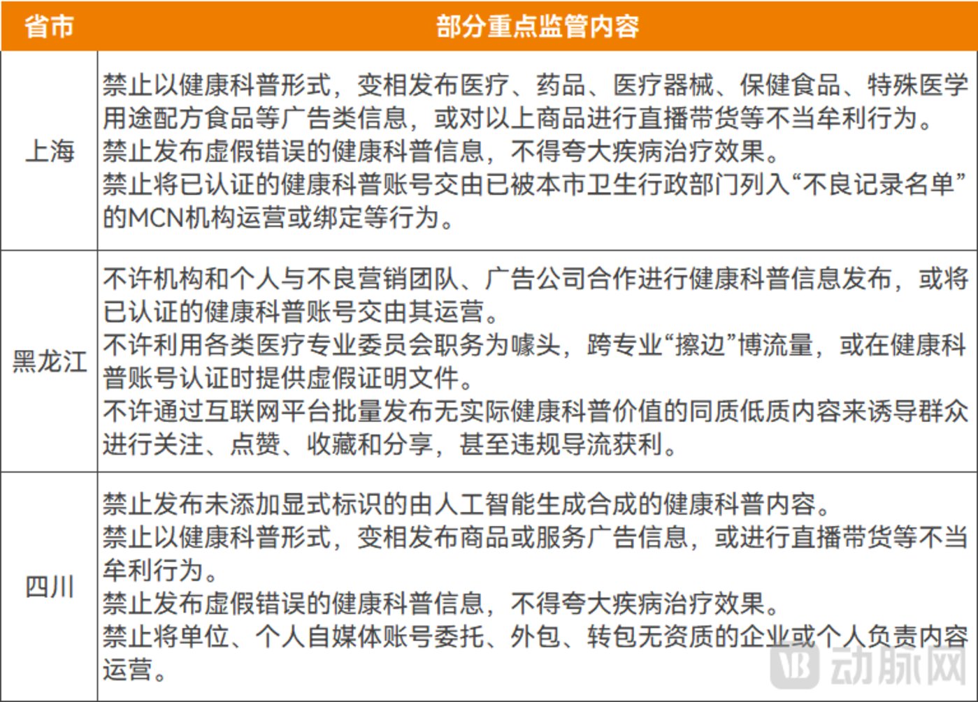 2025 年 3 月至 5 月,部分省市也已发布相应文件,例如上海市 《互联网健康科普负面行为清单 (试行)》、黑龙江省 《健康科普知识发布与传播 「十不许」(试行)》 以及四川省 《互联网健康科普负面行为清单 (试行)》。