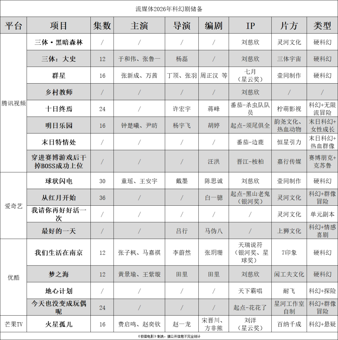 △  流媒体 2026 年科幻剧储备-17 部储备科幻剧主创信息
