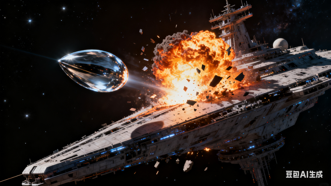 △  笔者用豆包生成的“ 水滴攻击恒星级战舰” 示意图