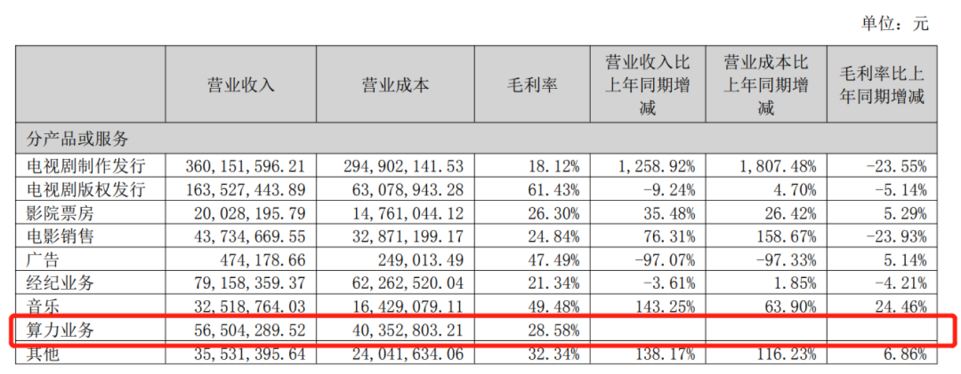 今年年初,华策影视在投资者关系活动记录表中披露,公司于今年 1 月成立了专门团队,并为此规划了不超过 10 亿的预算,用于支撑算力业务发展。高调入局之后,相关业务已经开始产生收益。财报数据显示,今年上半年,华策影视的算力业务收入达 5650.43 万元,另外据华策影视在互动平台回答投资者提问时表示,公司累计签订的算力业务订单已超 10 亿元,将在合同期内分期履约确认。