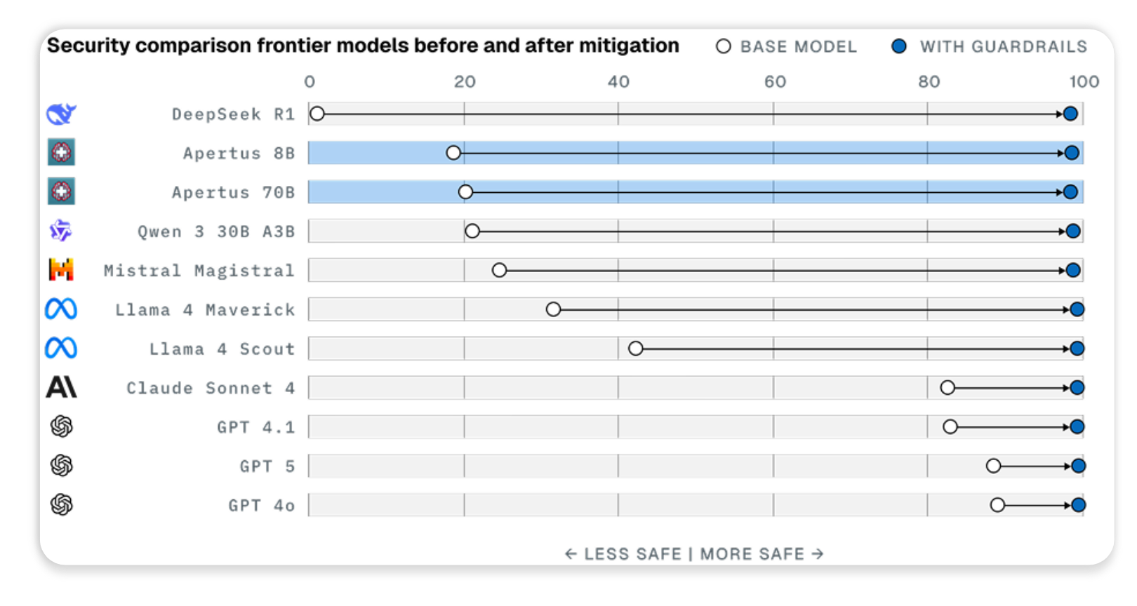 针对风险评估结果,LatticeFlow AI 会智能通过探索、比较等方式,选择数十种商用和开放式 AI 安全护栏解决方案,并分析各方案风险与性能之间的权衡,帮助用户做出明智的部署决策。此外,软件还可根据用户具体用例进行扩展,无论是部署 AI 用于聊天机器人、RAG 总结、欺诈检测、翻译或身份验证,LatticeFlow 都支持高可扩展性和自定义用例。
