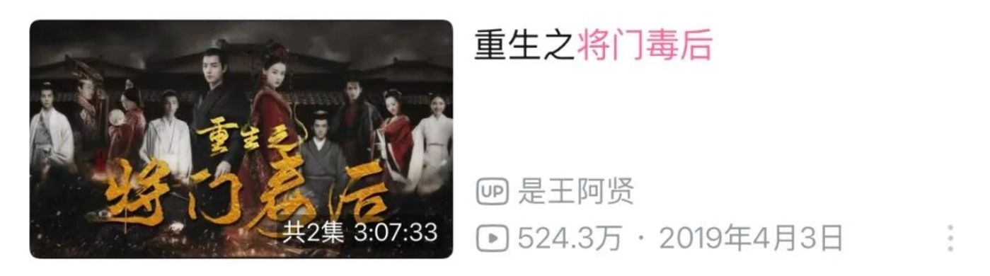 以 《将门毒后》 为例,在影视化选角之前,2019 年 B 站剪刀手二创版本就率先一步爆红,播放量超过 500 万,肖战版谢景行和迪丽热巴版沈妙得到了不少原著粉的认可,甚至还进一步炒热了原著。