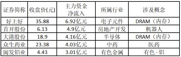 从主力资金来看,今日涨停板个股中,主力资金净流入金额排名前 5 的个股分别为好上好、首开股份、大港股份、众生药业、闽发铝业。