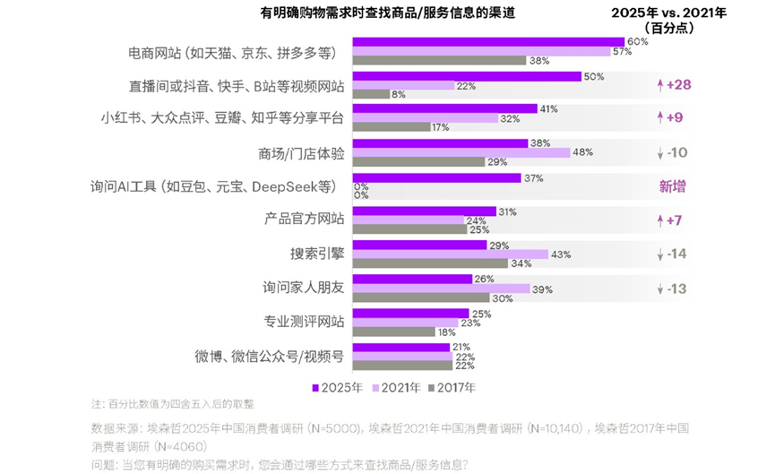 在信息过载的时代,消费者也发展出了独特的应对机制。埃森哲 《未来生活趋势 2025》 报告发现,49% 的中国消费者相比一年前更经常质疑网络内容的真实性。