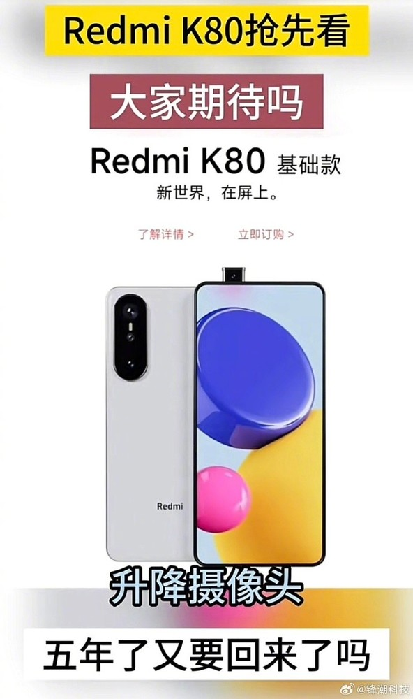 据数码博主最新发布的信息显示,几年前曾兴盛一时的升降摄像头可能要在 Redmi K80 上回归,以实现真正的全面屏。而此方案早年前曾被 Redmi K30 Pro 使用,实现了正面没有任何水滴、刘海和打孔的真全面屏,在当时备受用户的欢迎。