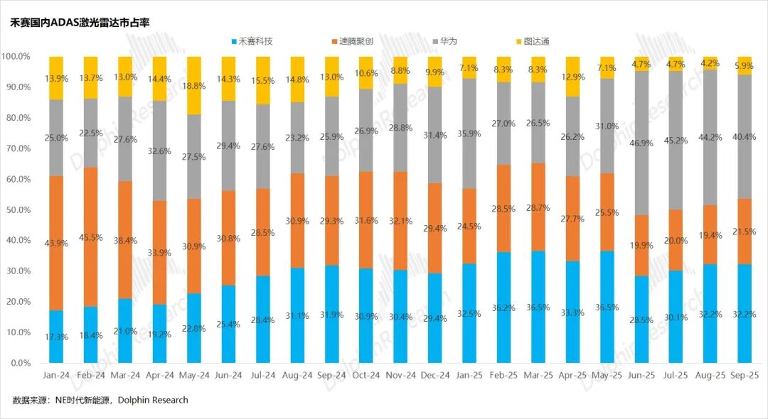 禾赛在国内市场已经获得了前两大 ADAS 客户 (预计小米和理想)2026 年全系车型的定点合作,实现激光雷达 100% 的标配,而市场更关注比亚迪/吉利等车企的订单进展,具体可能需要看业绩会中管理层的披露。