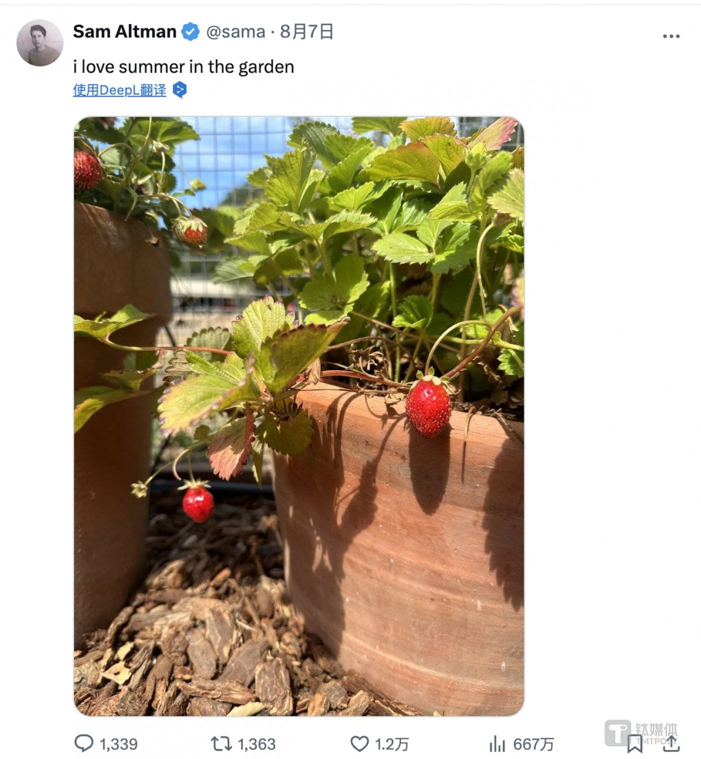 本月初,奥尔特曼在推文上发布了一张 「草莓」 图片,但他没有详细说明,这引发了人们对即将发布 「草莓」 模型的猜测。据一位直接了解这些会议的人士称,OpenAI 今年夏天还向美国国家安全官员演示了 「草莓」。
