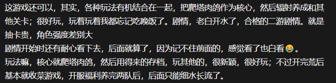 所以,这就带来了用户习惯的差异,对于习惯 「重资产」 二游、且没有多少二次元原始积累的新生代玩家,《星塔旅人》 的二次元风味,就显得有些 「古早」,有不少玩家都认为,其剧情有些 「废萌」 和 「低龄」。