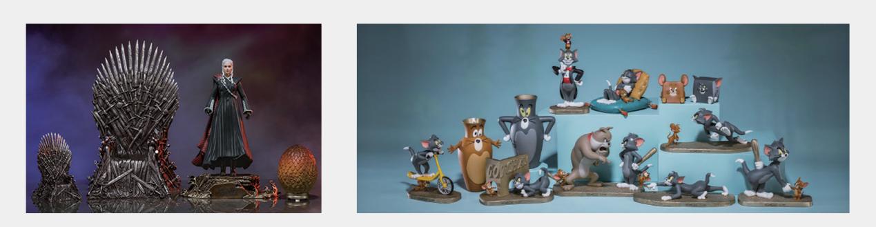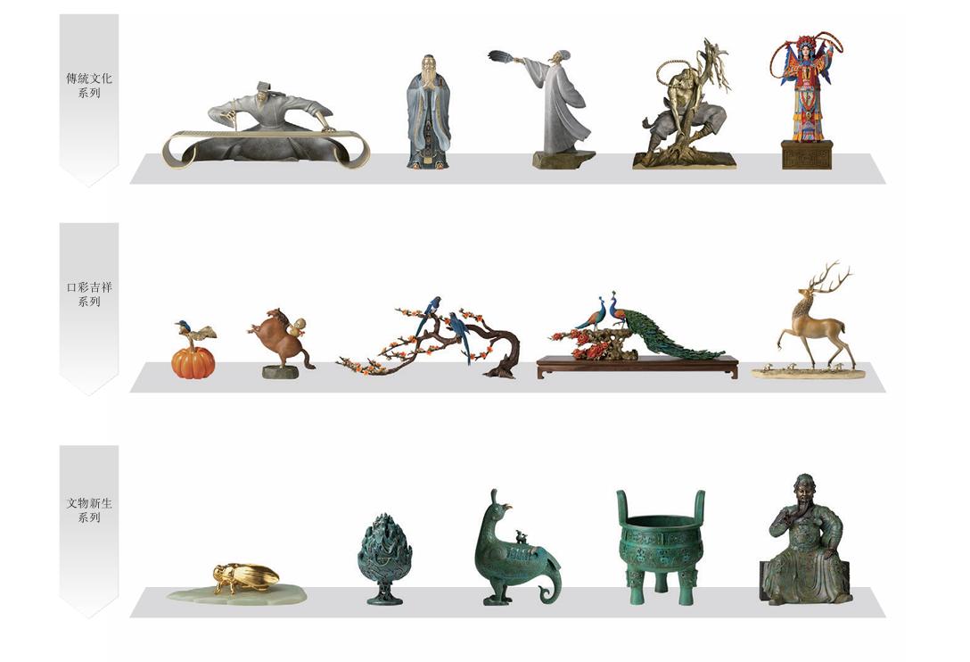 除了“ 传统文化系列”“ 口彩吉祥系列”“ 文物新生系列”“ 神话民俗系列” 等原创 IP 外,在其官方店铺中,亦可见到 《功夫熊猫》《复仇者联盟》《变形金刚》《猫和老鼠》 等全球知名 IP 的角色形象摆件。