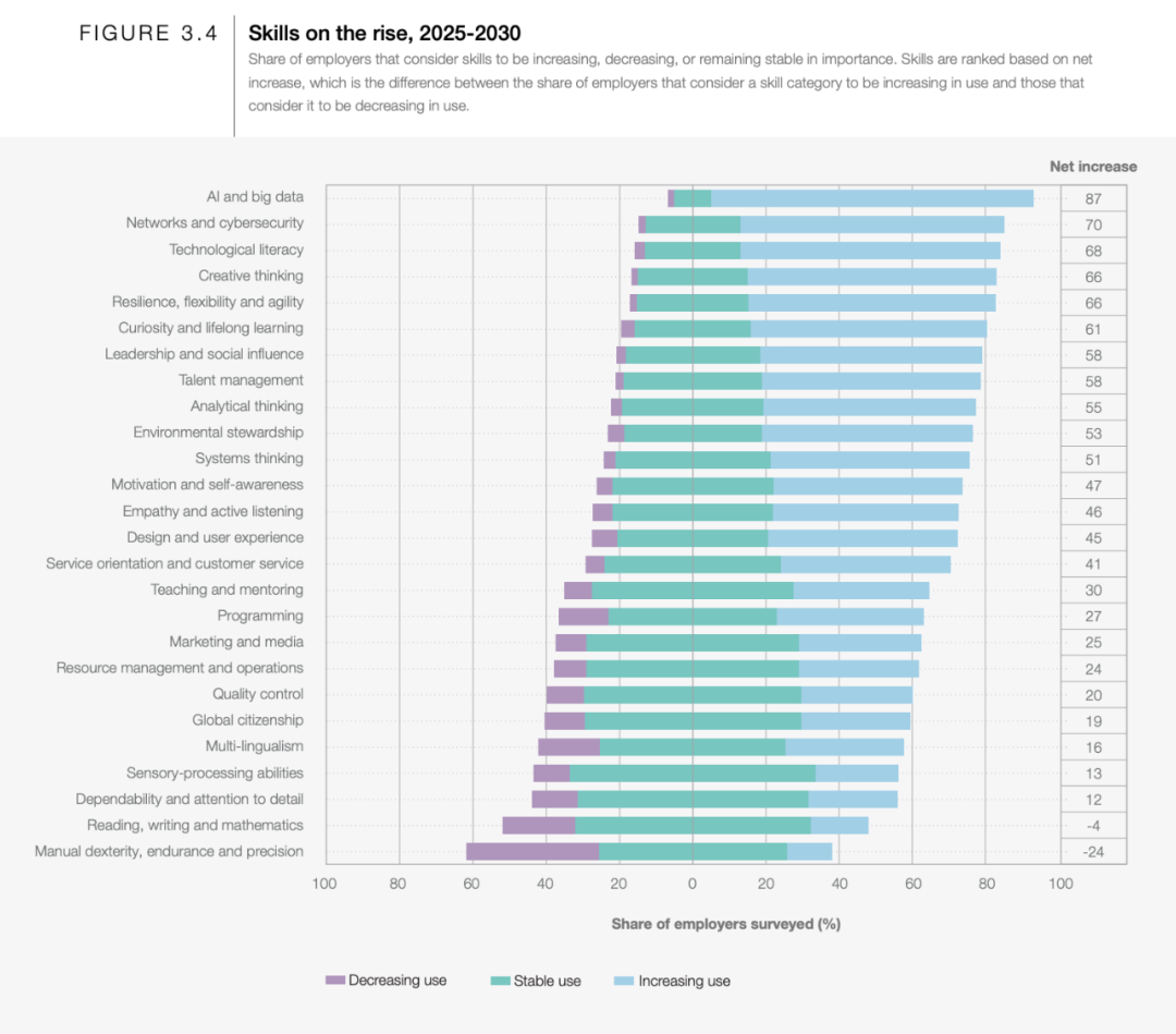 世界经济论坛 (WEF) 的 《2025 年未来就业报告》 明确指出,未来五年增长最快的白领职位几乎完全由“ 专家” 主导:AI 与机器学习专家、数据分析师、信息安全专家和金融科技工程师。