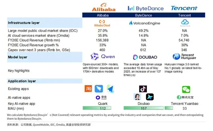众所周知的是高盛上个月调高了阿里三年资本开支的预期,一口气从 3800 亿调高至 4600 亿,其实在同一篇研报中,高盛对于腾旭的预期也高达三年 3460 亿。