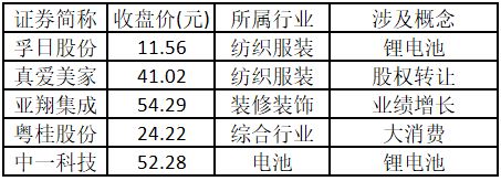 从行业特征来看,今日涨停板个股中,纺织服装、燃气、医药商业行业的个股最多。
