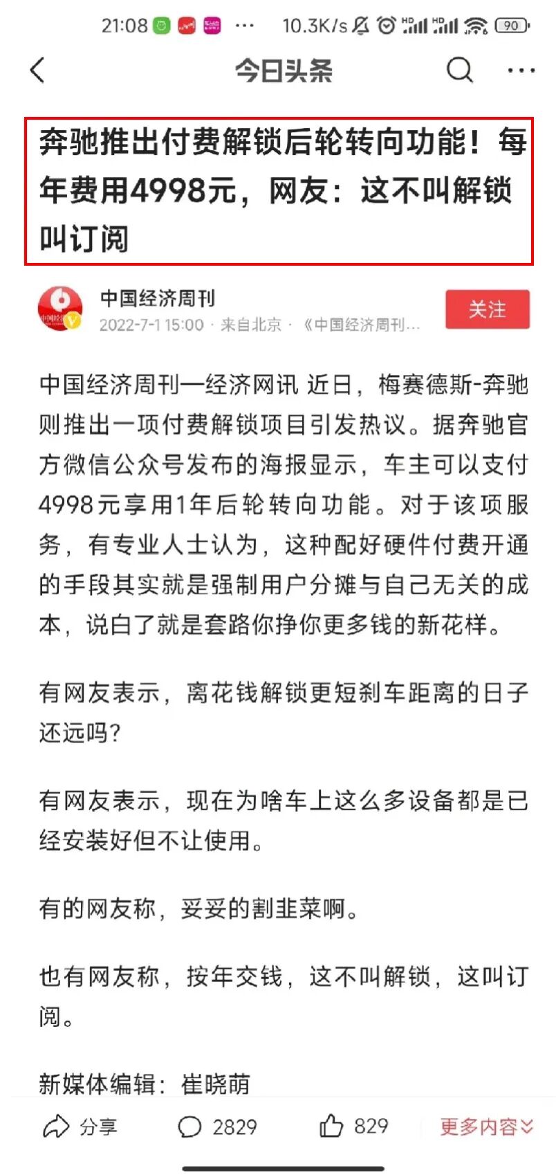 不合理收费最终会反噬品牌忠诚度,影响车企的长期口碑与销量。从现实的眼光来看,市场反噬已经开始:社交媒体上关于奔驰导航收费、后轮转向解锁费的吐槽被广泛传播热烈讨论,这就是消费者的直接反抗。