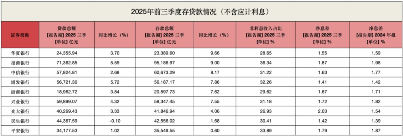2025 年前三季度,9 家股份行仍然保持 「对公走强,零售趋弱」 的格局。