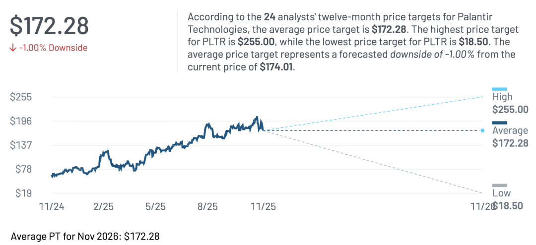 一方面,它没有自己的模型,却站在模型之上做操作系统,政府+企业两头吃,踏实落地;另一方面,它的股价表现、估值水平、分析师分歧,又是这一轮 AI 情绪的缩影:多头觉得它代表的是“AI 基建软件层里的长期赢家”,空头觉得它代表的是“ 在真正回到现金流折现之前,市场愿意预支的那一部分热情”。