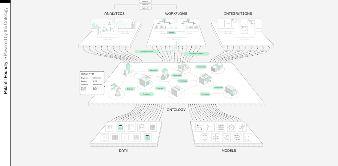 它对接的是 GPT、Claude、Llama 这些大模型,在 Foundry 构建的世界模型之上,把 AI 嵌进业务流程里:模型调度、权限管理、审计追踪、自动化工作流全包。对企业来说,它解决的是“ 怎么让 AI 真正接管一部分决策权”。