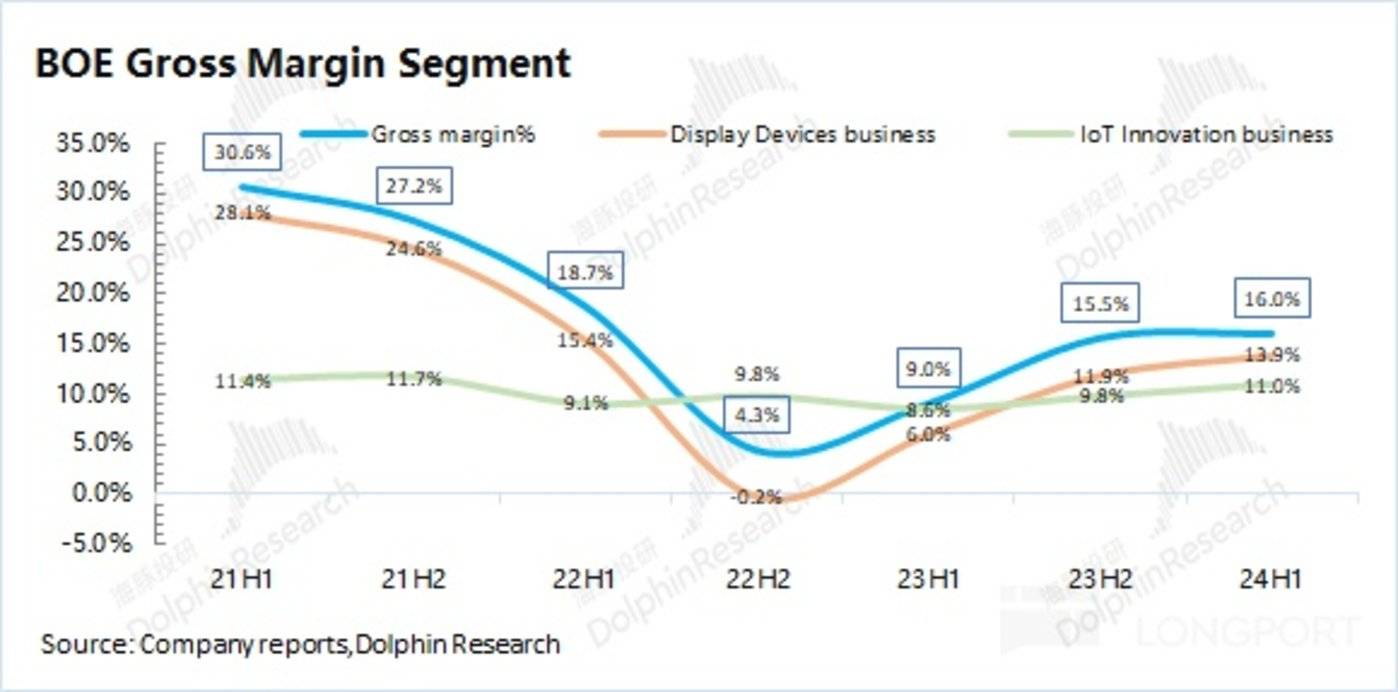 1) 显示器件业务:上半年毛利率 13.9%,同比提升 7.9 pct。显示器件业务毛利率提升,主要是面板涨价带来,受行业周期影响较大;