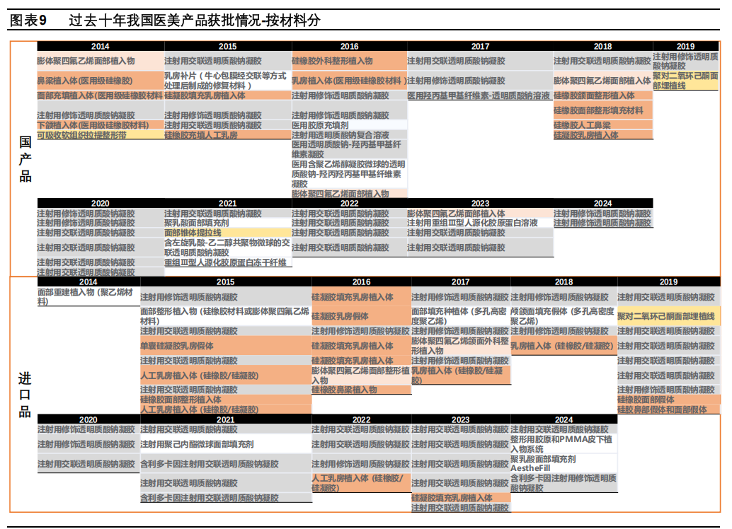 一方面,爱美客正加速产品迭代,寻找下一个“ 嗨体”。成立以来十年间,爱美客平均每 7 个月就推出一个新品,截至 2024 年底,爱美客共拿下 17 个医疗器械注册证 (含 11 个三类医疗器械证)。
