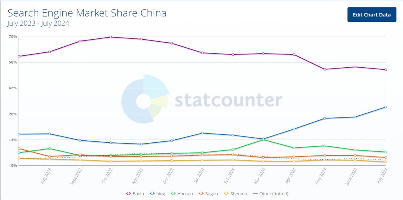 而根据国外数据机构 statcounter 数据,在 PC 端,百度的渗透率在最近的一年内出现了下滑。此前,百度已不再是中国第一大桌面搜索引擎 这一消息就曾登上热搜。