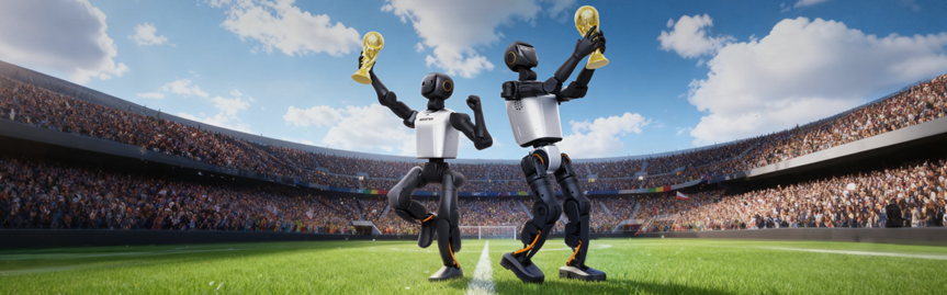 加速进化产品的成功,源于“ 在单一场景中实现闭环验证” 的战略定力。基于团队长达 20 余年的技术积淀,加速进化选择了一条与众不同的路径—— 深耕机器人足球高端赛事,并将其做深、打透,高效形成竞争优势。旗下产品 Booster T1、K1 在 RoboCup 等国际顶级赛事中屡获冠军,不仅确立了在绿茵场上的统治地位,更成为世界顶尖参赛队伍的“ 标准装备”。
