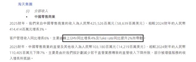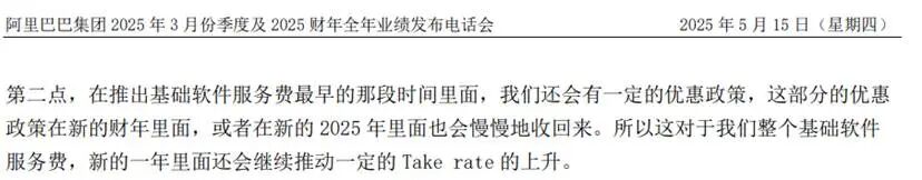 在 2025 年,3 月份电话会上,阿里管理层表示 25 年一季度客户管理收入同比增长 12%,主要由 Take rate  提升所带动—— 没有提及 GMV 增长。