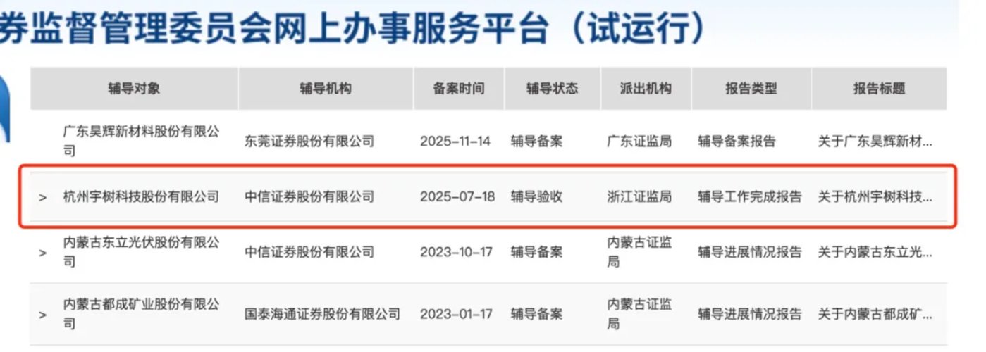 宇树科技 IPO 辅导完成