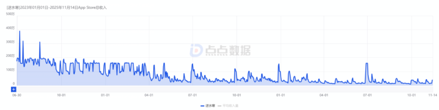 《逆水寒》 手游自 2023 年在国内上线以来,凭借持续的版本更新与较稳固的付费结构,长期位居国内 iOS 畅销榜前列。两年多来,它保持了相对稳定的收益表现,月流水大致维持在 5000 万+人民币级别,其长线运营优势已在国内市场得到验证。