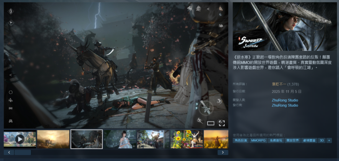 在全球 MMO 市场整体降温的大环境下,网易的 《逆水寒》(国际版名 《Sword of Justice》) 在 11 月初正式登陆全球 129 个国家与地区,并覆盖移动端与 Steam 平台,多市场+多平台宣发,可以说是自信高举出海大旗。
