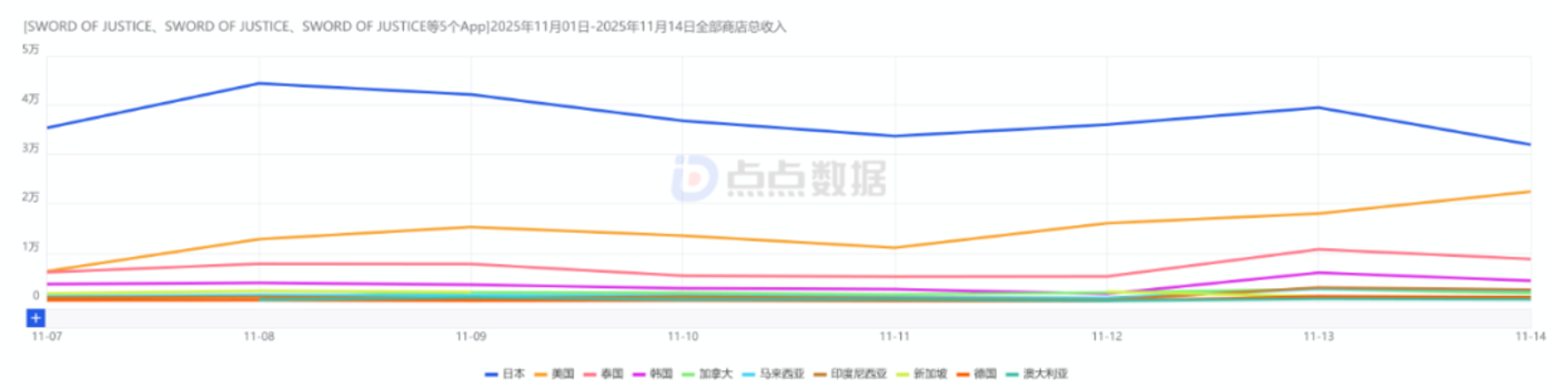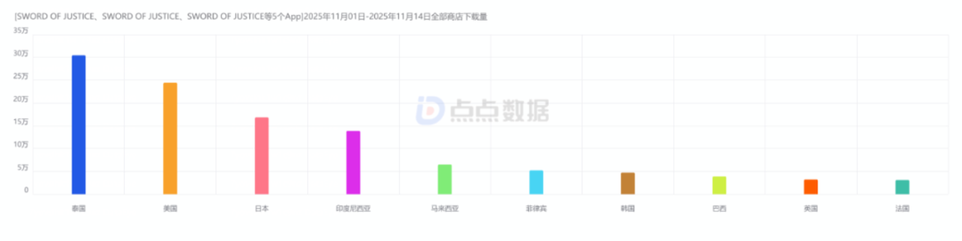 虽然早期数据难以代表未来走向,但可以确认的是,《Sword of Justice》 在亚洲市场已建立了初步的用户基础。
