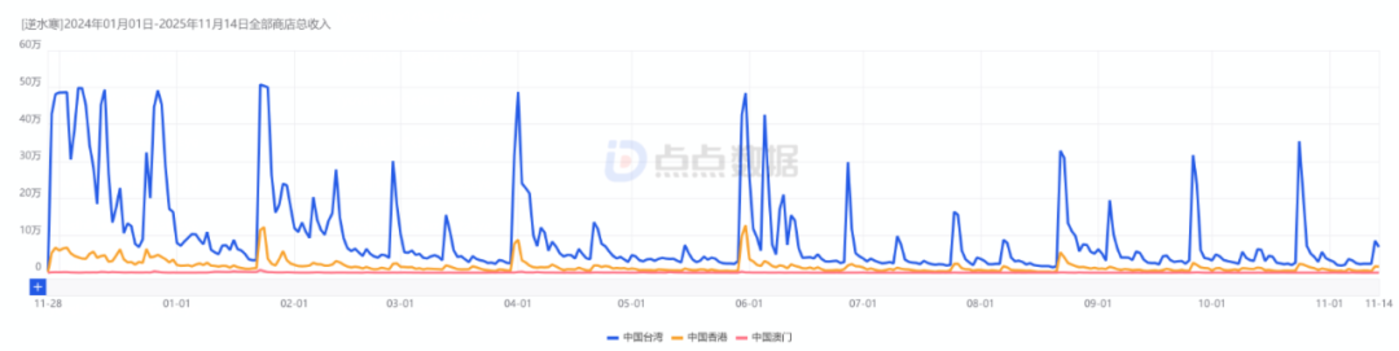 《逆水寒》 港澳台收入走势 (点点数据)