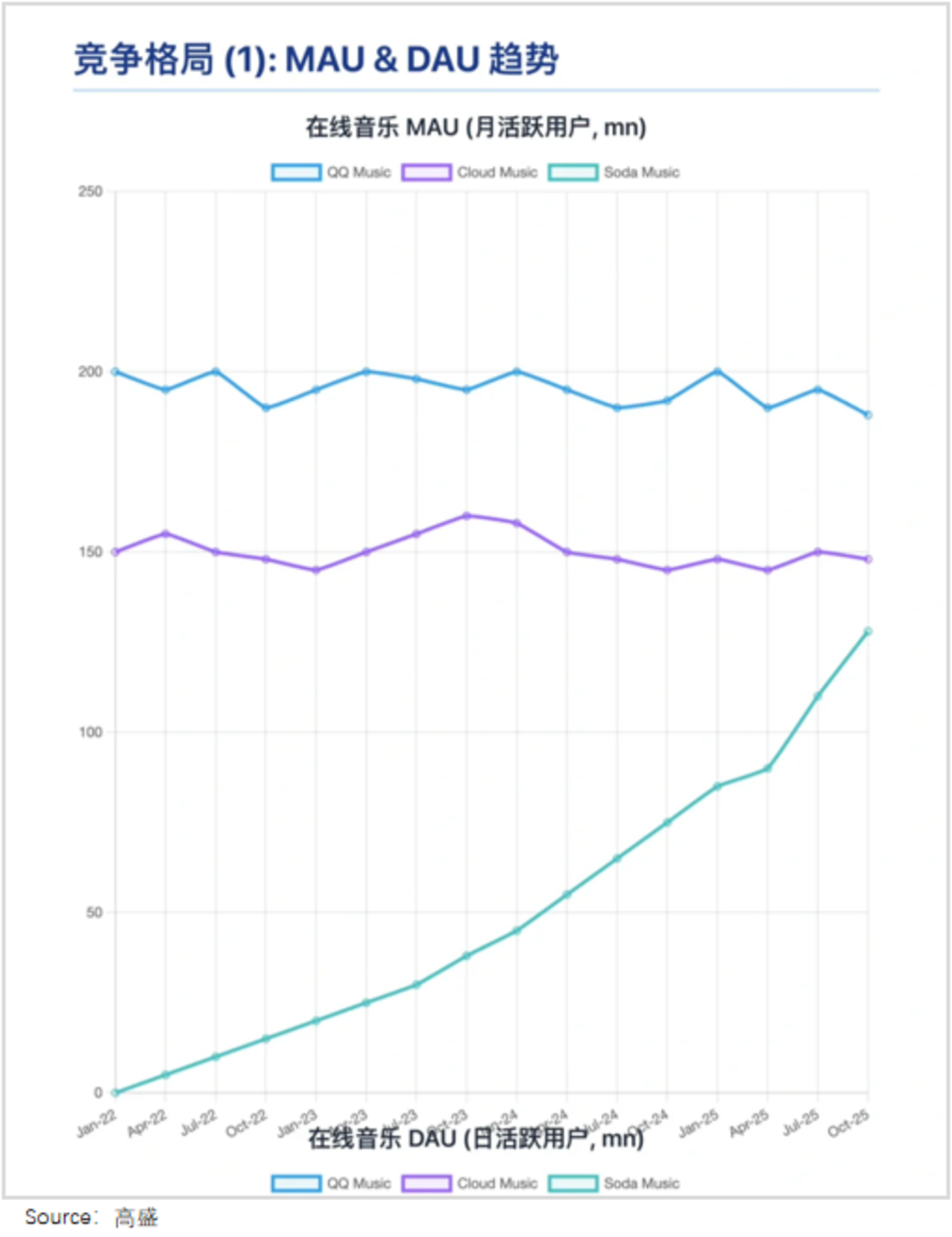 在线音乐平台的沉浮,也验证了这一点:最新研报显示,拥有更多优质版权音乐的 QQ 音乐,被 「短视频+音乐」 闭环和推荐算法领先的汽水音乐抢走了用户。