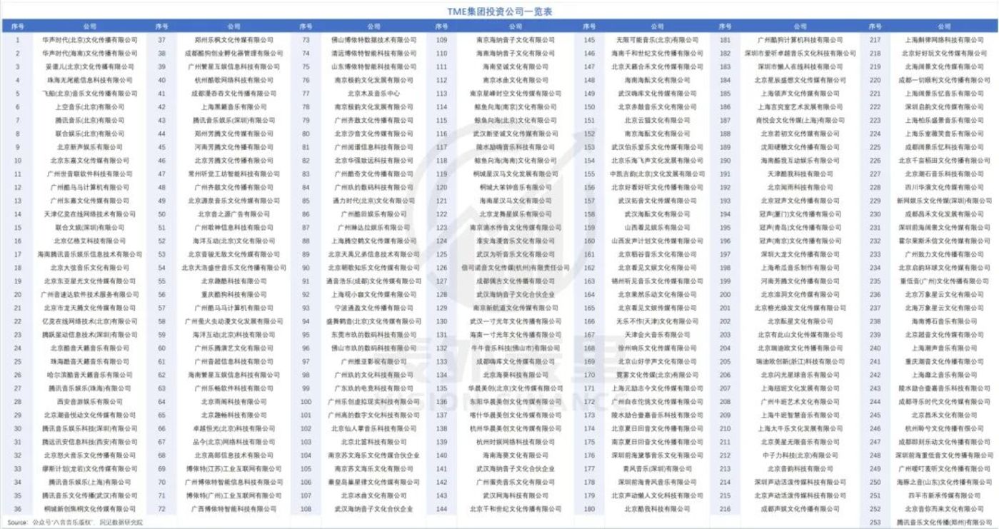 统计显示,有超过 250 家规模不一的音乐公司,通过股权合作或合约安排等方式,与 TME 深度绑定。