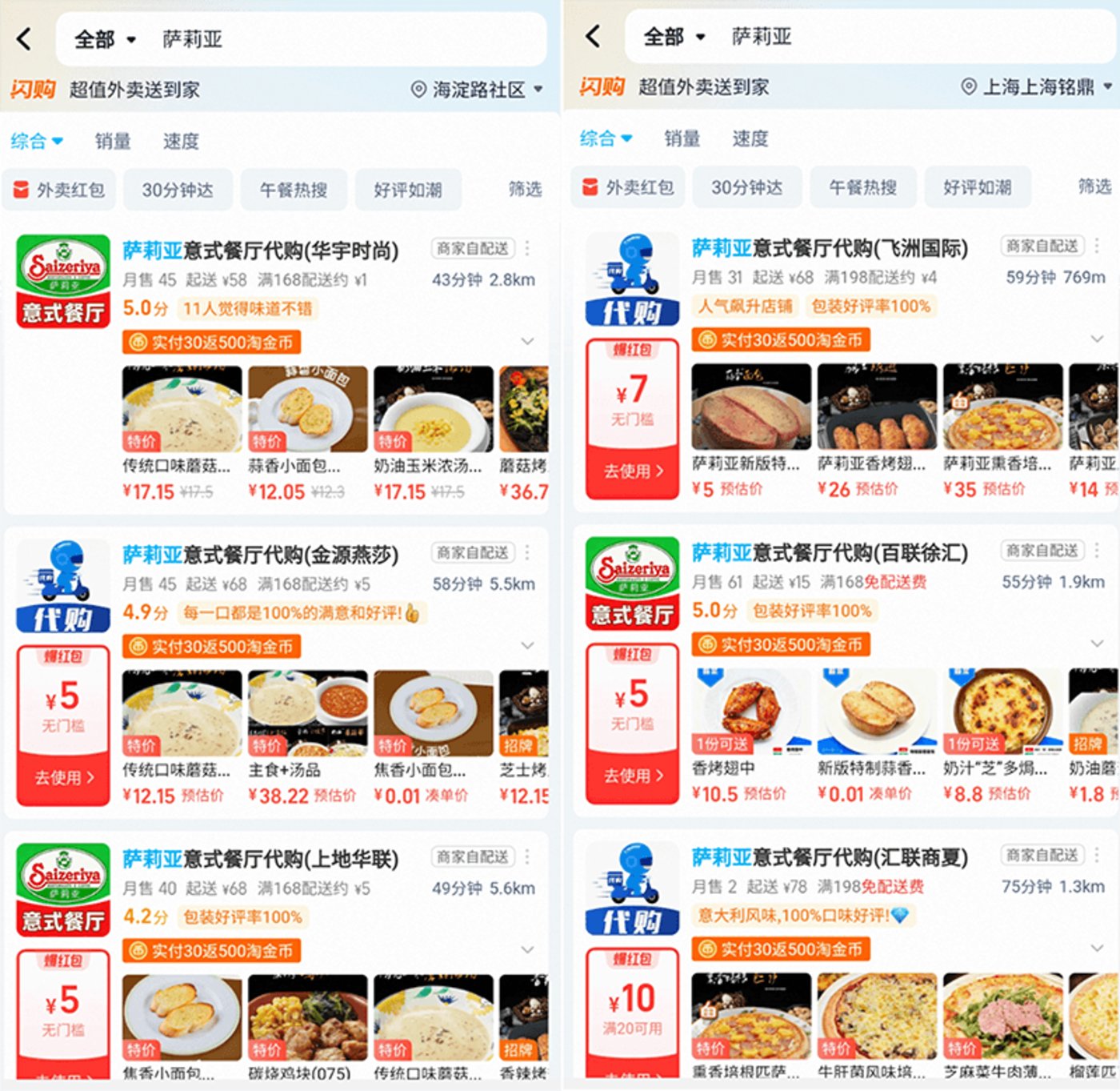 萨莉亚广州,截图自外卖平台