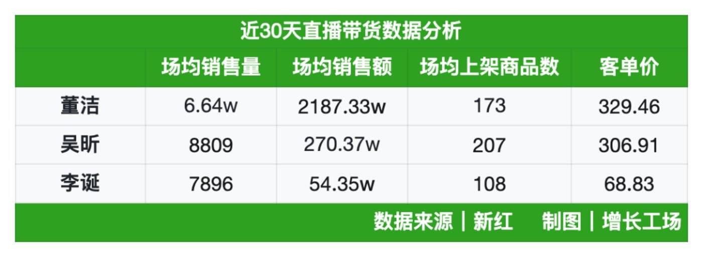 新红数据显示,李诞仅 30 天直播场均销售额约 54.35 万,但 「小红书一姐」 董洁的场均销售额是 2187.33 万,吴昕场均销售额为 270.37w。