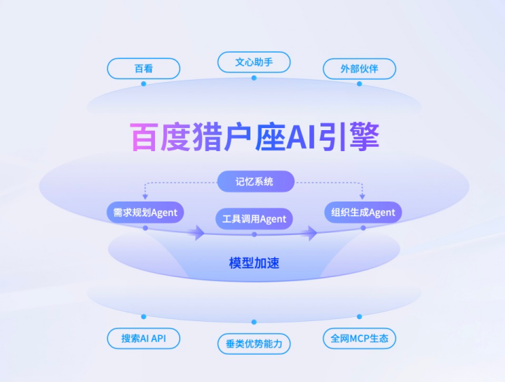 复杂需求的拆解依赖于多智能体架构来实现。百度的猎户座 AI 引擎有组织生成 Agent、需求规划 Agent、任务调用 Agent,分别对应了结果的生成,需求的推断、拆解和任务的实现。在此基础上,记忆系统能够通过对长短记忆的分离,让 AI 能够形成对用户属性的记忆,并持续进行更新。