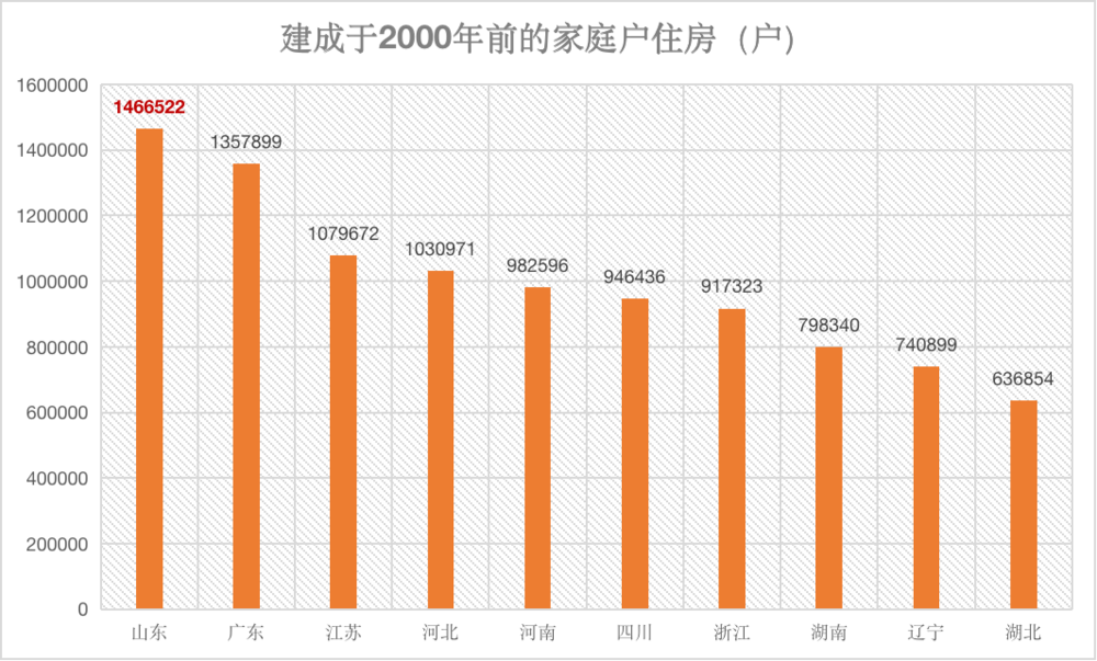 全国近十分之一建于 2000 年前的家庭户住房都在山东。