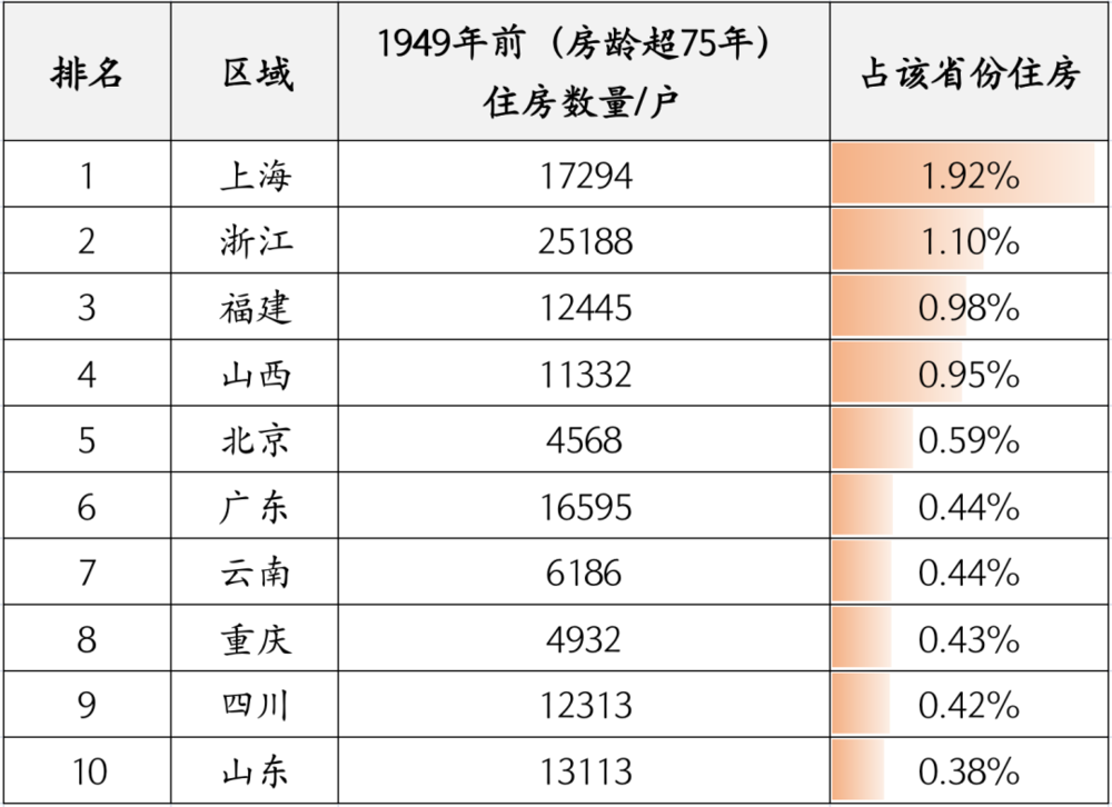 这里我单独把全国修建于 1949 年以前,也就是房龄超 75 年的房子拎出来了: