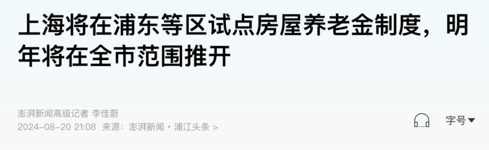 包括此次提出 「房屋养老金」,上海也是最先站出来的城市之一。