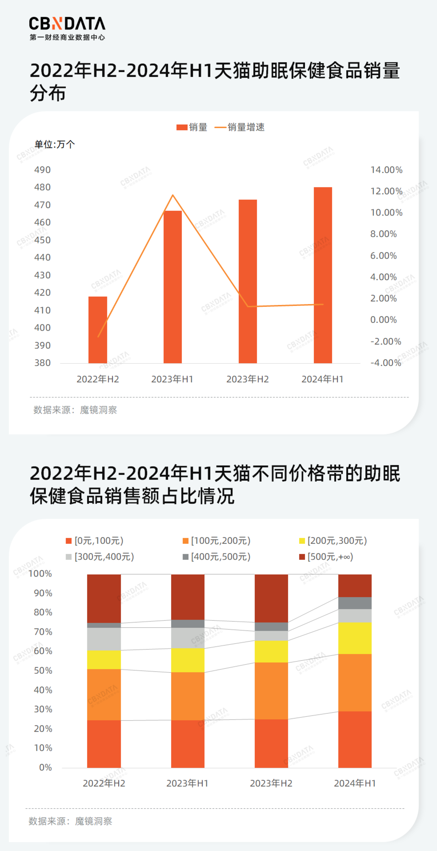 注:CBNData 根据魔镜洞察数据,基于天猫平台保健食品、婴幼儿营养品、孕产妇营养品类目中商品标题包括 「睡眠」 或 「助眠」 的产品进行分析。