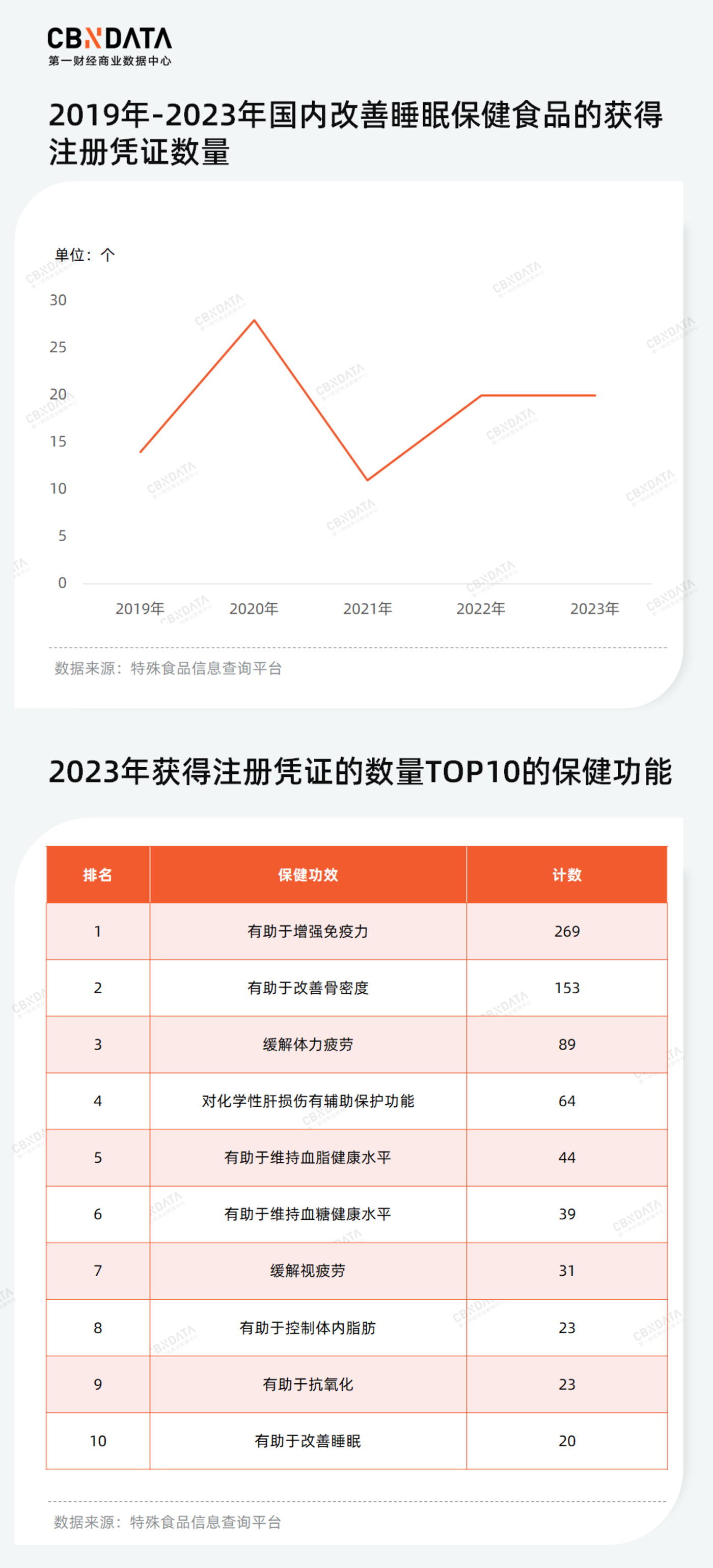 自保健品监管 「双轨制」 实施以来,改善睡眠保健食品一直是高潜品类。尽管与更成熟的品类相比仍有较大差距,但最近几年这类产品的注册数量平均稳定在 20 个左右,例如 2023 年,有 20 个改善睡眠产品获得注册凭证,在市场监督管理局规范的 24 个功效中排名第 10。与此同时,原料丰富度层面,国内产品仍需突破,今年上半年注册的四款新产品均是以酸枣仁为原料。