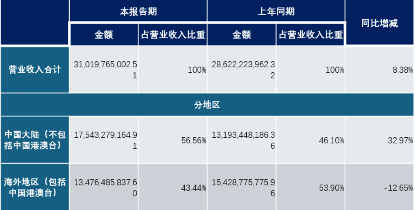 阳光电源 2024 年上半年营业收入整体情况