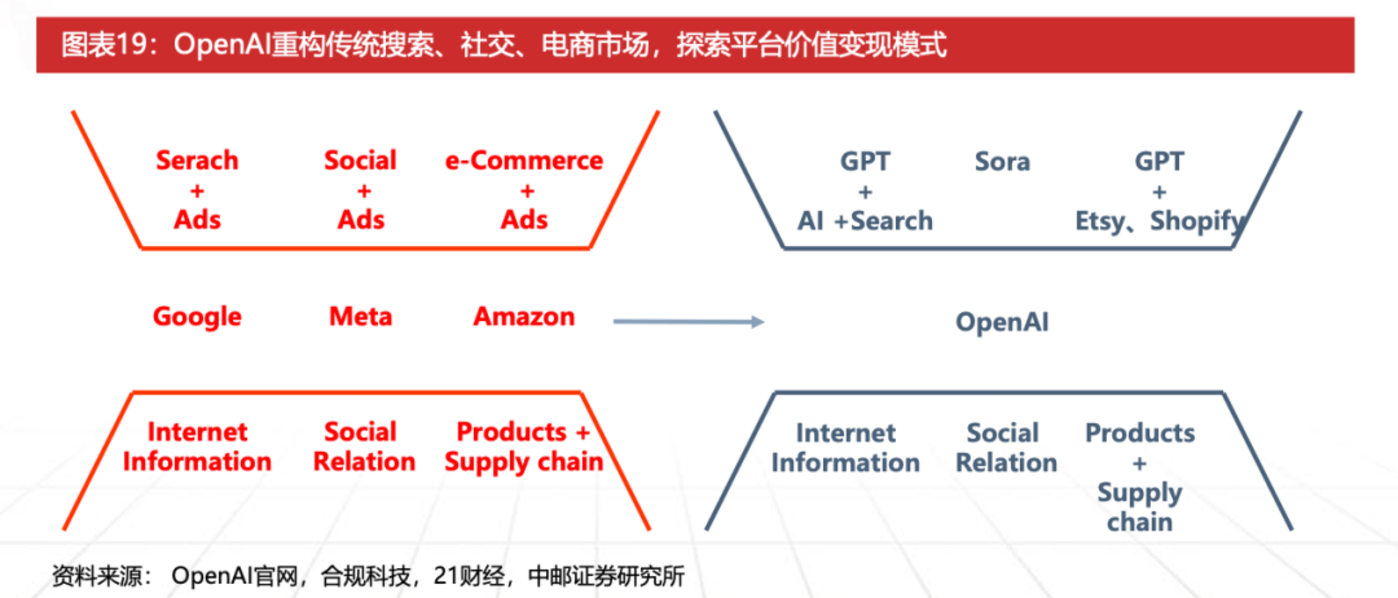 不难发现,从搜索到社交到电商,OpenAI 几乎覆盖了互联网生态内大多数流量场景,除了内容。